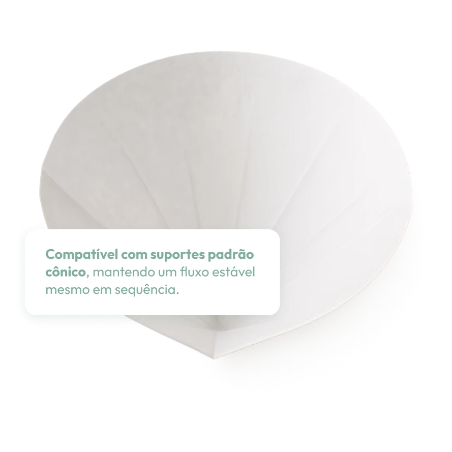 Sua composição garante resistência e porosidade ideais, permitindo que a água passe de forma uniforme e sem deixar resíduos na bebida.